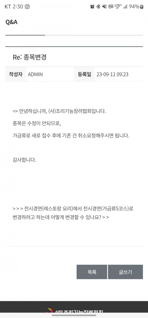 말씀하신대로 다시 신청했습니다! 기존에 신청한거 변경처리 부탁드립니다